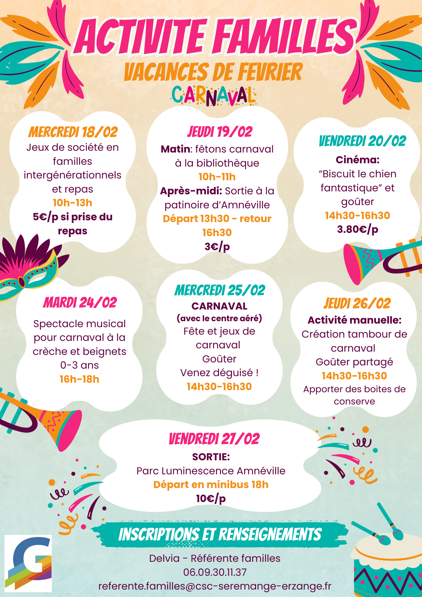 Renseignements : Delvia FELIX, référente familles, 03 55 18 03 18